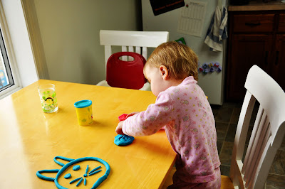 We've had a number of days, all in a row, filled with rain. So... out comes the Play Doh! Yes... Alia's still in her pajama's. And it's 3 pm in the afternoon. Don't worry, we changed her into her clothes before Daddy got home! :) That's what rainy days are all about, right? Right?!?